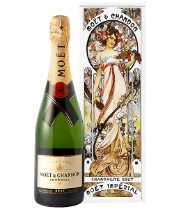 全世界最為人所知的香檳品牌,推出限量慕夏名作外盒,以自然的畫風與線條、暖調色彩和無侷限的自由稱著,傳遞法式生活享樂,並展現酩悅的前衛精神。