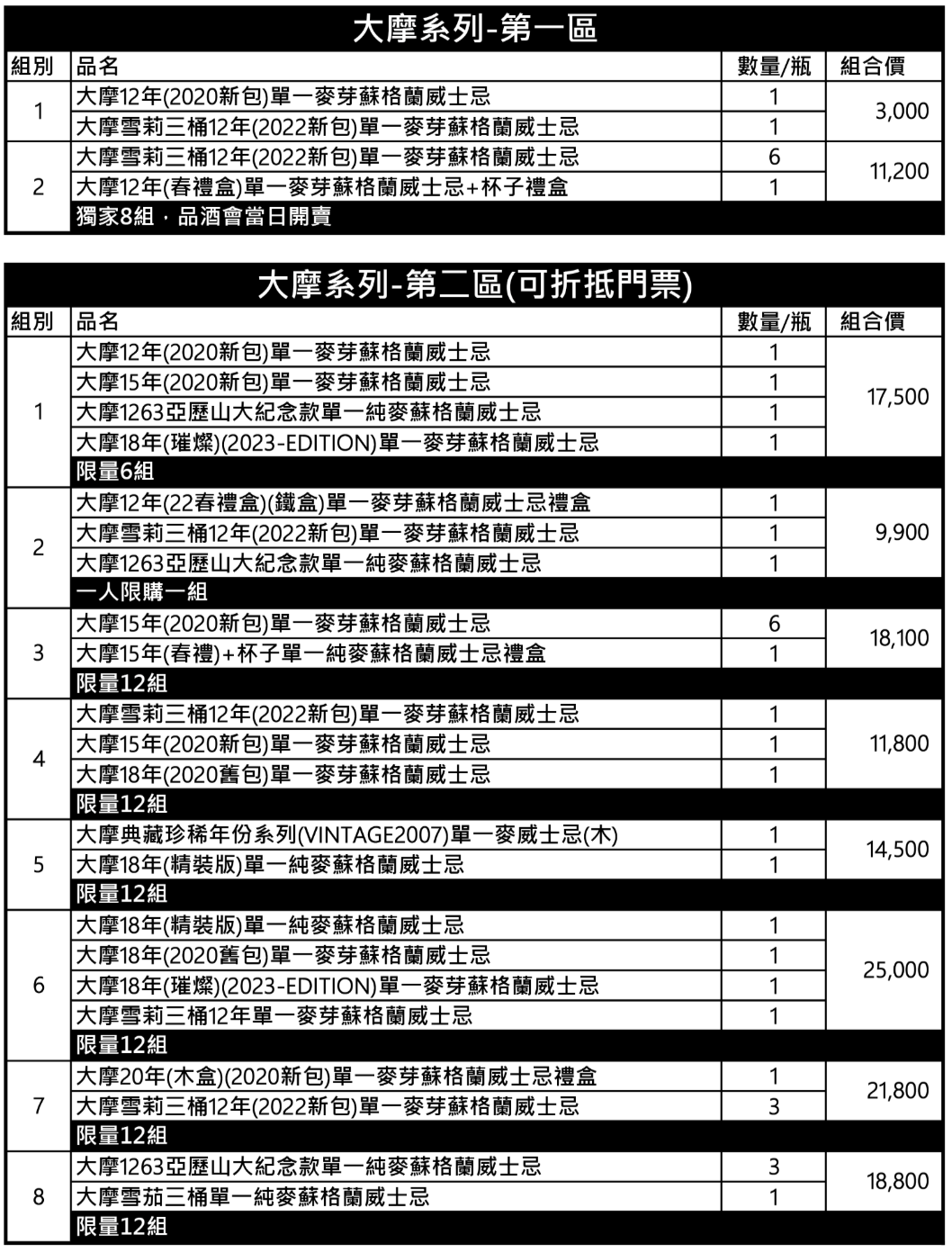 第二區任選一組,可憑門票贈送一瓶吉拉雪莉12年一瓶,門票僅限折抵乙次。