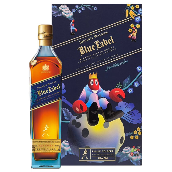 湛藍精美的禮盒包裝凸顯其標誌性,盒中附有 Johnnie Walker X Philip Colbert 龍蝦先生限量公仔,是菲利普·科爾伯特致敬 Johnnie Walker 的獨家設計。 身穿約翰走路經典「邁步向前」紳士服裝的龍蝦先生公仔,一共有三款顏色–紅色、黑白色、銀色版龍蝦先生完美還原兩百年前的最初代造型,紀念價值非凡。